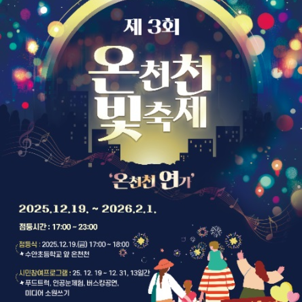 부산 동래구의 겨울을 아름답게 밝힐 '제3회 온천천 빛 축제'가 2025년 12월 19일(금)부터 2026년 2